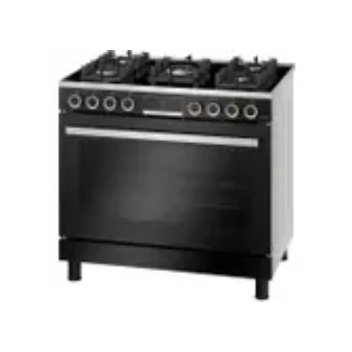 موقد بوش، 90 سم، 5 شعلات، شاشة رقمية، أمان كامل، حوامل من الحديد الزهر، مروحة فرن، أسود، HJY5G7V61S