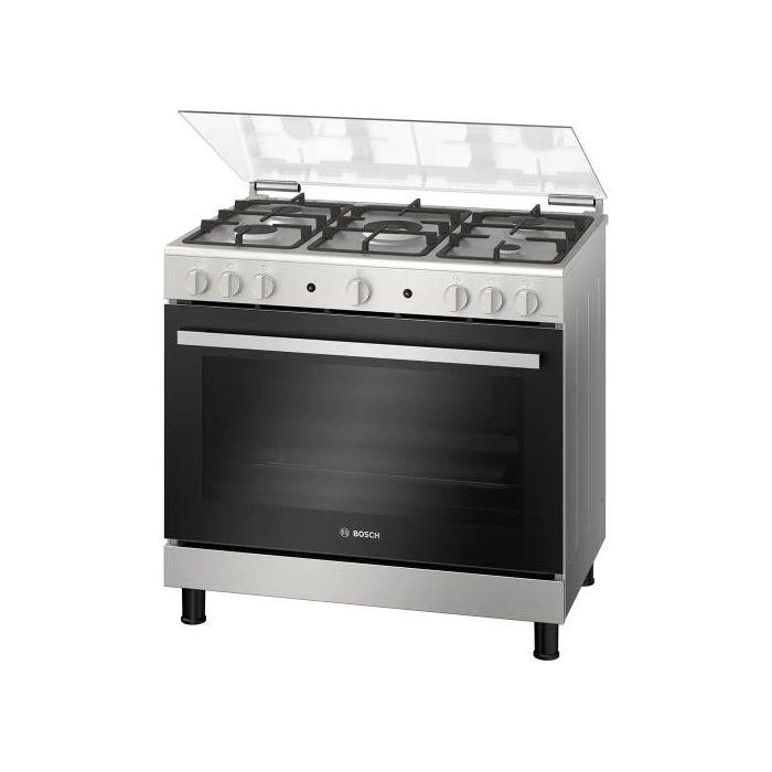 موقد بوش من السلسلة 2، 90 سم، 5 شعلات، مروحة تبريد، شواية، ستانلس ستيل، فضي، HGV1F8Y50S