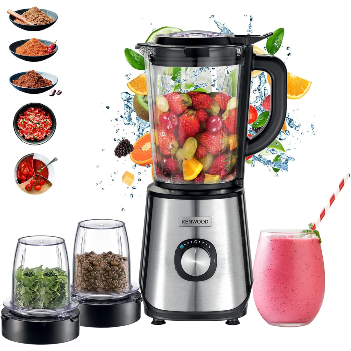 كتابة مراجعةخلاط كينوود زجاجي و2 مطحنة، 1000 وات، BLM45.720SS - أسود فضي