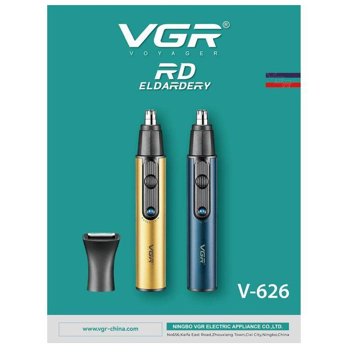 ماكينة تشذيب الشعر وازالة شعر الانف في جي ار بروفيشنال قابلة للشحن، ازرق - V-626