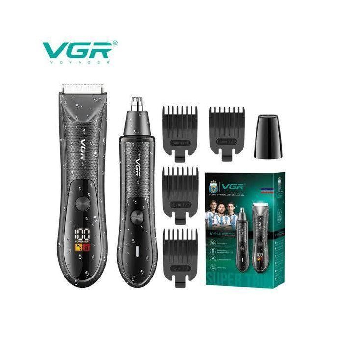 ماكينة تشذيب شعر الجسم والأنف في جي ار بروفيشنال قابلة للشحن ديجيتال للاستعمال الرطب والجاف، اسود - V-934